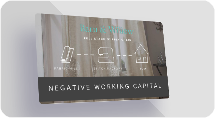 Barn & Willow Page 9 Page 11F U L L S T A C K S U P P L Y C H A I N F A B R I C M I L LS T I T C H F A C T O R YY O U N E G A T I V E W O R K I N G C A P I T A L