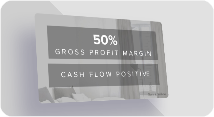 50% G R O S S P R O F I T M A R G I N C A S H F L O W P O S I T I VE