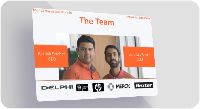 founders@dataculture.in angel.co/dataculture The Team Karthik Sridhar Gurudatt Bhobe CEO COO dataculture Page 9 Page 11
