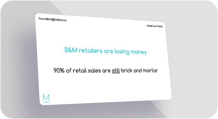 [email protected] angel.co/nobal B&M retailers are losing money 90% of retail sales are still brick and mortar