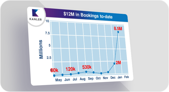 Millions M ay JunJul AugSepOctNov DecJan Feb 10 7.5 5 2.5 0 2M 8.5M $12M in Bookings to-date 530k 80k120k KANLER Page 1 Page 3