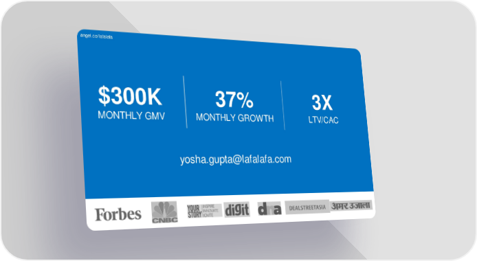 yosha.gupta@lafalafa.com angel.co/lafalafa $300K MONTHLY GMV 37% MONTHLY GROW TH 3X LTV/CAC LafaLafa Page 8 Page 10