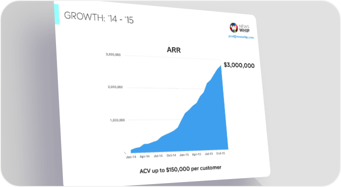 Growth: ’14 - ‘15 paul@newswhip.com ARR 3,000,000 $3,000,000 2,000,000 1,000,000 '- Jan-14 Apr-14 Jul-14 Oct-14 Jan-15 Apr-15 Jul-15 Oct-15 ACV up to $150,000 per customer NewsWhip Page 5 Page 7