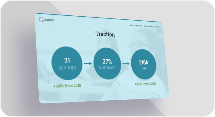 ANGEL.CO/QMAGICO-1 [email protected] Traction 31 27% $16k SCHOOLS MoMGROWTH MRR +138% from 2015 +85% from 2015