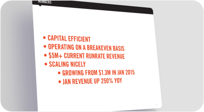 NUMBERS • CAPITAL EFFICIENT • OPERATING ON A BREAKEVEN BASIS • $5M+ CURRENT RUNRATE REVENUE • SCALING NICELY • GROWING FROM $1.3M IN JAN 2015 • JAN REVENUE UP 250% YOY 2015 CULTUREMAP MEDIA KIT 5
