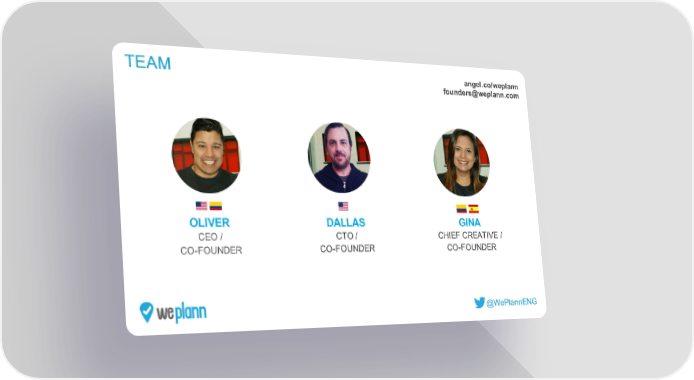 TEAM angel.co/weplann founders@weplann.com OLIVER DALLAS GINA CEO / CTO / CHIEF CREATIVE / CO-FOUNDER CO-FOUNDER CO-FOUNDER @WePlannENG we plann Page 8 Page 10