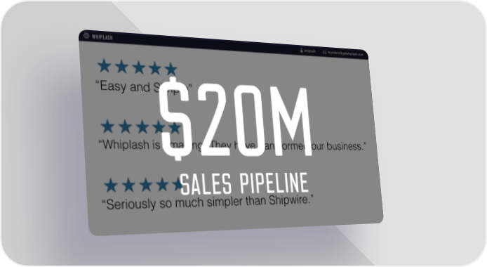 whiplash [email protected] “Easy and Simple” “Whiplash is amazing. They have transformed our business.” $20M SALES PIPELINE “Seriously so much simpler than Shipwire.”