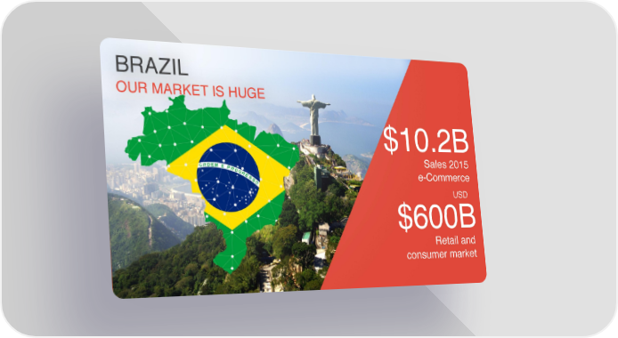 BRAZIL OUR MARKET IS HUGE $10.2B Sales 2015 e-Commerce USD $600B Retail and